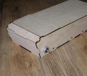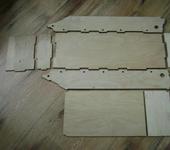 Детали корпуса вырезаны из обычной шлифованной фанеры (не влагостойкая) толщиной 4 и 8 миллиметров. Корпус будет собираться на шиповом соединение плюс рейка 10 х 10 мм с клеем и саморезами. Резчики сделали небольшую поправку на толщину луча лазера и шин в шип стали очень плотно, без зазоров.