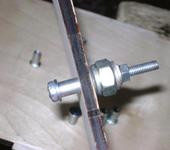Рычаги для опорных катков состоит из винтов длиной 60-65 мм и пластины толщиной 4 мм. Все гайки хорошо затягиваем и сварка нам не понадобится.