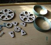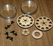 “Дольки” для катка Т-55 по краям закругляем при помощи дремеля, а потом догонял в ручную. Фанеру к фанере клеим при помощи ПВА, а пластик к фанере при помощи эпоксидки. Предварительная сборка перед склейкой. Всё получается очень точно. Центральное кольцо вклеиваем в последнюю очередь.