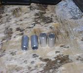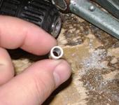 В катках у нас вместо подшипников установлены втулки. Втулки делаем из алюминиевой трубки наружным диаметром 8 мм. внутренний 6 мм. Нарезаем длинной 22 мм. Делал я так, отмерял нужную длину , зажал в дрель трубку, запускал дрель и приставлял ножовку по металлу. В итоге получаем ровные детали. Сразу делаем на одной стороне фаску для удобства запрессовки при помощи напильника. Так же мне пришлось не много развернуть внутреннее отверстие, а то болт М6 не проходил.
