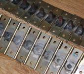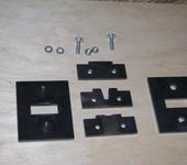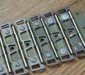 Петли китайские , анодированные, ширина 57 мм. При соединении петель расстояние между пальцами 17 мм, что соответствует масштабу. Масштабную ширину трака 72 мм делаем при помощи накладки.