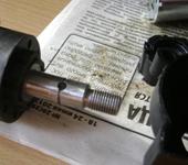 Для зацепления оси с кулаком , нам в вал нужно установить штифт. Пришлось услугами станочников для сверления отверстий и нарезания резьбы. Для удерживания штифта в оси с торца сверлим отверстие и нарезаем резьбу М4. Затем просто вкручиваем резьбовой штифт М4 с внутренним шестигранником.