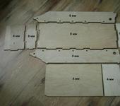 Детали корпуса вырезаны из обычной шлифованной фанеры (не влагостойкая) толщиной 4 и 8 миллиметров. Корпус будет собираться на шиповом соединение плюс рейка 10 х 10 мм с клеем и саморезами. Резчики сделали небольшую поправку на толщину луча лазера и шин в шип стали очень плотно, без зазоров.