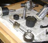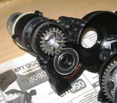 Все замеры показали, что поставить можно - но нужно будет немного отрезать лишнего. Начинаем с корпуса планетарки. Трещотку убираем и часть пластика со втулкой отрезаем. Оставляем 5 мм. Пластик режем лобзиком по дереву, а медно-графитовую втулку ножовкой по металлу.