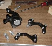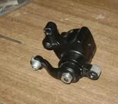 Для такого масштаба делать самому дисковую тормозную систему дома не решились. Включаем фантазию и думаем откуда взять комплектующие. Первое что попадает на ум - велосипед. Иду на базар ( в магазин) и спрашиваю самые маленькие и дешёвые тормозные суппорта под дисковый тормоз. Есть несколько видов, беру только с регулировкой колодки. К сожалению нет вариантов левый/правый, а то было бы здорово.