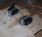 Закрепляем сервы. Усилие серв 10 кг. Крепление из уголка плюс хомут (обязательно). Тяга сделана из велосипедной спицы диаметром 2 мм.