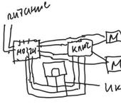 От ИК приемника сигнал идет как на основную плату ( мозги) управления, так и на схему ключа, который отключает любую нагрузку, например двигатель!
