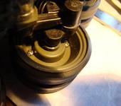 Соединение катков после расчленения. Мелкие саморезы, нацелены на головки болтов на наружнем катке, насквозь не проходят.