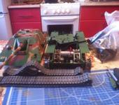 Наконец дорвался удлинил и перепоял все провода , разьёми , фишки ,установил ТК 22 KLARK , аппа самолётно- вертолётная уж какая есть , ещё добавил в корпус один тамиевский разъём (мама-папа) чтоб отсоединять верхнюю крышку в случае разборки танка ведь аккум остался на своём месте ,пришлось поставить новые зубчатые колёса так как на старых танк дёргало мало было железиума для вала и колёса при установке устанавливались криво танк ни ехал , вот что получилось -
