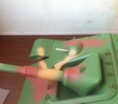 Особенно мудрить не собираюсь на этот раз , так что б ездил чётко , работа немного сдвигается , раскидал оба танка и начал собирать ягу . Так как выключатель и регулятор звука будут установлены в задней части рубки замазал ненужные отверстия в ванне, установил балансиры . Так как краски и грунтовки нет пока то работу останавливаю пока не куплю .