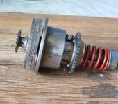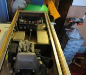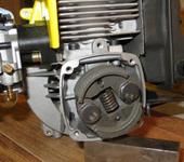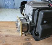 Двигатель от триммера 25сс ,1л.с.был куплен так как есть фото без сцепления точнее колокола и его корпуса.Рас уж это все пришлось вытачивать то я решил поменять местами стартер с сцеплением причина этой переделки обдув двигателя,то есть при такой установки мотора поток горячего воздуха от цилиндра будет идти назад(а не в перед при стандартном расположении стартера и сцепления) через замкнутый воздуховод и выходить через окна в корме танка.Хочется что бы вид машины особо не изменялся и не пришлось делать какие то замаскированные решетки в передней части или в башне.
