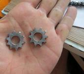 Это цепочка с ГРМ мопеда типа “альфа,дельта” (шаг 6.3мм, ширина 9мм,ролик 3,3мм)от туда же и звездочка на 28 зубов ,у меня их стоят две на главной передаче,остальные поменьше все самодельные.