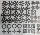 Всем привет!Все детали вырезаны лазером из 3х мм стали,для катков нашел трубу 90мм нарезали колец и проточили до толщины стенки в 2мм,на ленивец ничего не нашел поэтому вырезал полоски из листового метала загнул ,приварил и на точиле доделал.Ленивцы будут на подшипниках,катки поставлю на латунных втулках.