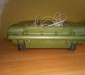 в разъем вставляются кабели от башни, регуляторы хода, светодиоды передние и задние, фара и кабель для внешней зарядки АКБ и все это выглядет примерно так