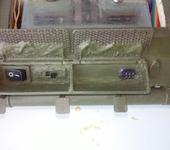 Результаты работы за несколько дней. Немного покрасил корпус, сделал немного имитации копийности, грязевые щетки, горловины наружных баков, габаритные огни спереди имитация инфракрасной фары, обычная фара, фальшь борта, общий выключатель и выключатель эффектов (дым машины, габаритных огней и фары), выхлопную трубу.