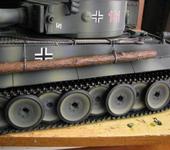 Понемногу продолжаются доработки и отделка Тигра. Укрепил днище в районе редукторов. Теперь этот узел усилился еще и механическим крепежом. Установил на плату вентилятор (как на Тайгене). Установил подшипники на ведущие валы. Выточил у токаря новые винты балансиров и надежно, как мне кажется, зафиксировал катки. Уж очень сильно они болтались. Сейчас люфт совершенно пропал и катки не болтаются и четко отрабатывают. Посадочные отверстия под винты балансиров сильно разнились с диаметром винтов (почти 0.3 мм. разницы). Установил металлические люки радиста и механика-водителя. Под люки перенес включатели. Теперь аккумулятор не отключается при хранении. Приобрел и установил металлический пулемет, буксировочные петли, фары и траки на башню. Приобрел и вклеил решетки МТО. Под них вклеил магниты держащие десант на броне. Немного перекрасил весь танк. Добавил коричневого цвета. Доработки продолжаются. Задумываюсь о новой электронике.