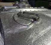 Сваренные трубки и пластины (каркас гусеницы) вставляются в пресфору, туда заприсовывается сырая резина. Пресформу ставим на печку (печка обычная с вольфрамовой проволки) держу в течении 25 минут. Пресформу выложу позже.