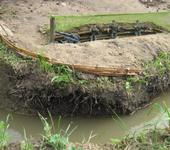 Вдоль плетеного забора расставил солдат масштаба 1/35 (склейка, Звезда). Их с легкостью выносит шарик из орудия танка. Во второй линии в траншее посадил солдат покрупнее. По ним можно ездить без последствий! Рядом разместил орудие, направленное в сторону моста. Типа противотанкового 😎 Сверху натянул сетку от комаров зеленого цвета - маскировка!