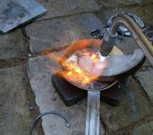 Когда всё подготовил. Пропановой горелкой прогревал форму, пока плавился алюминий. И когда всё прогрелось, резким движением заливал метал в форму. Остывает он быстро. Литьё, зачистка, фрезеровка гребня и сверловка, заняла у меня 4 часа на 10шт. Долго! Но я надеюсь сделать приспособы, что бы получалось по быстрей.
