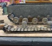 Когда-то давно пробовал собрать гусеничный вездеход. Гусеницы делал из банок из-под сгущёнки. Вырезал выкройку сгибал и запаивал. Катки из штампованных половинок тоже паяные. Всё закончилось когда попробовал отлить несколько траков из свинца. По сравнению с литыми жестяные оказались на вид полный отстой.