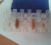 Далее для получения восковок используя мастер-модель опорного и промежуточного траков в фанерной коробке отлил формы для восковок (Материал формы “Пентаэласт 710”). Воск брал обычный пчелиный в медовых магазинах.
