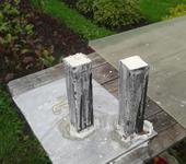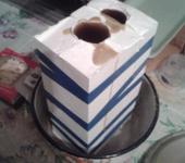 Затем готовые восковки (высотой 225-230мм) приклеивал на стальную плиту заливной горловиной вниз. Сверху на приклеенную восковку надевал стальную трубу (Сечение 60-60мм, Стенка 3мм, высота 250мм). После установки трубы и герметизировал щели между ней и установочным листом пластилином или воском. Далее кварцевый песок фракцией 0-0,63 и формовочный гипс Г6 смешивал и разбавлял водой до состояния легкозаливаемой смеси. Опытным путём выяснилось что наиболее лучшая пропорция: 800мл песка+350/400мл гипса, воды на глаз лил где то 750мл.