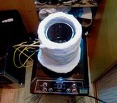 Результат пробного пуска: за 10 секунд тигель нагрелся примерно до 100 градусов при мощности 600Ватт (на максимум 2000Ватт не включал), дальше нагрев выключил - запахло пенопластом который обеспечивал зазор между индуктором и тиглем… Фото забыл на радостях сделать:)