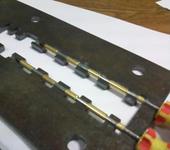 Выставил паралельно 2 иглы от шприца диаметром 0,8 залил парафином, лезвием придал нужную форму, приклеил на супер клей направляющие для катков и грунтозацепы. размер 20*9*3 отверстие 0,8, соединять траки буду булавкой швейной 0,5 сталь там та что нада! и цена радуэт 300 штук на долар!