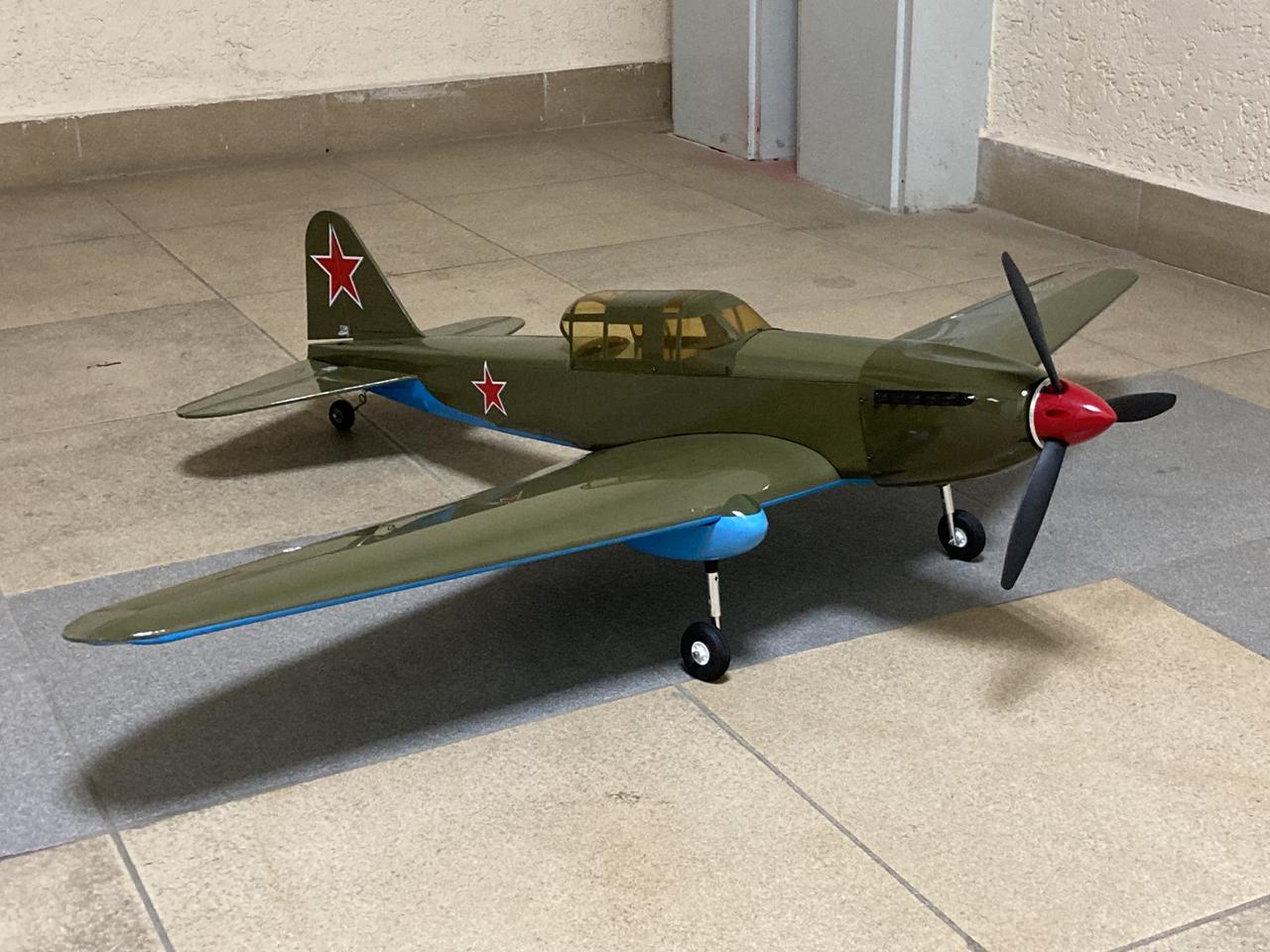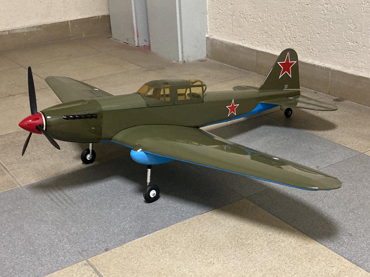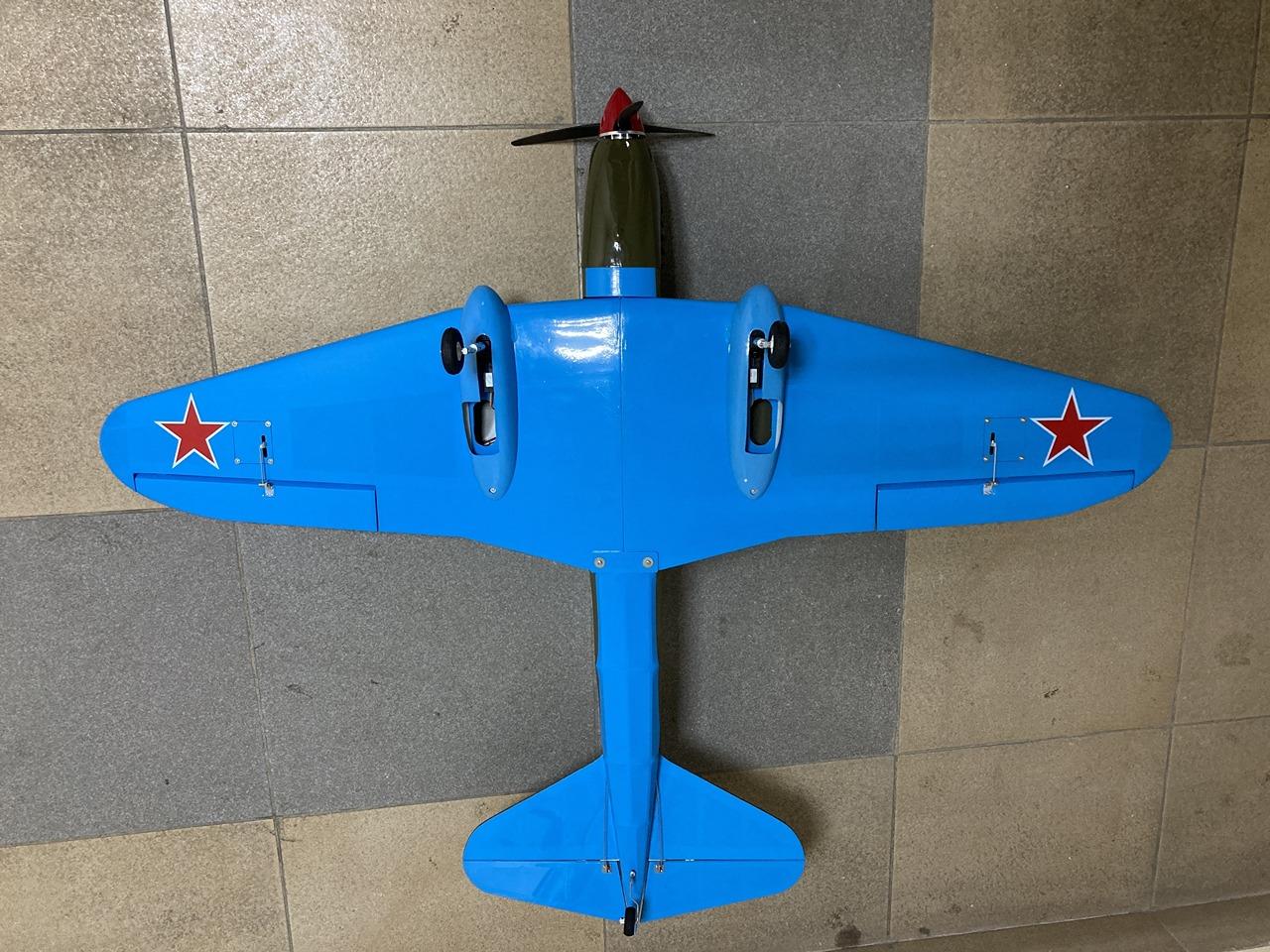 Полукопия Ил-2, от компании Pilotage, переделана и усилена в слабых местах, перетянута хорошей плёнкой, установлены электрические ретракты шасси с амортизирующей стойкой, мотор turnigy 3536, регулятор 40А, сервы 13г с металлическим редуктором.