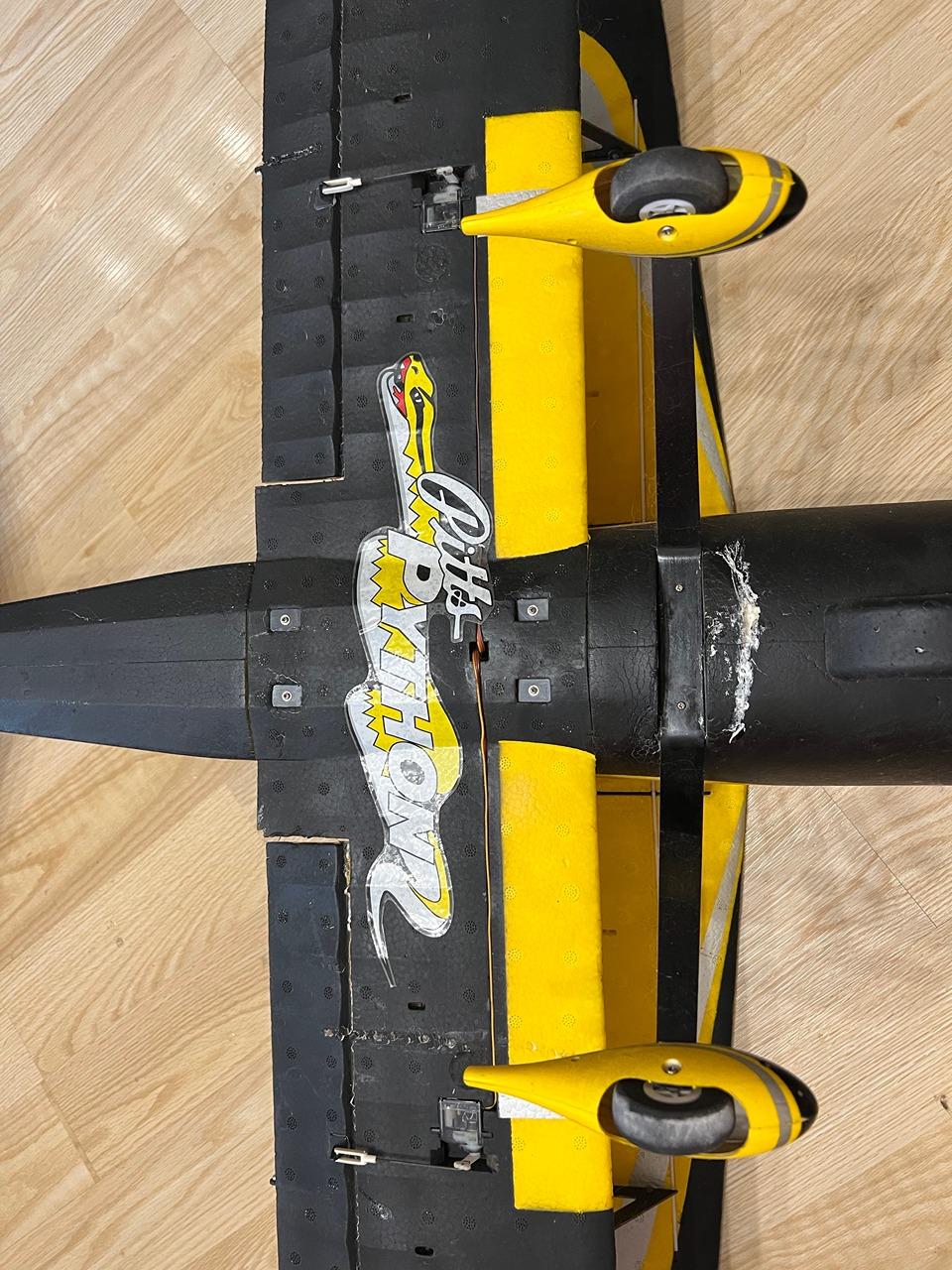 Самолет на 4 банки рассчитан. Требует мелкий ремонт на 10-15 минут (на фото видно, надо петли вклеить на руддер и закрепить растяжки. Поломка не полетная, это последствия выковыривания самолета с балкона.