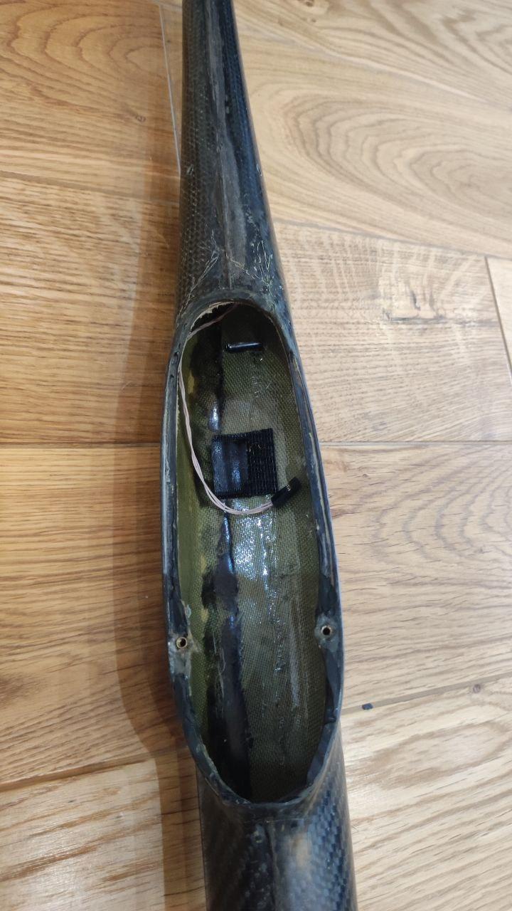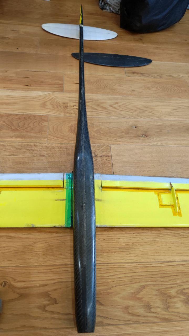 Карбоновый планер, делал Евгений (Ujin). Размах 2 метра. История изготовления, и в целом что это можно почитать где то тут в дневниках Автора этого шедевра.