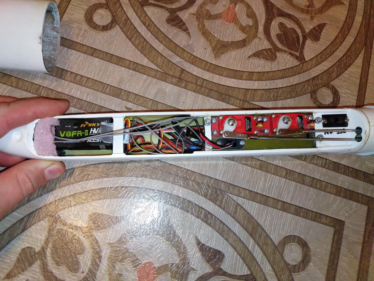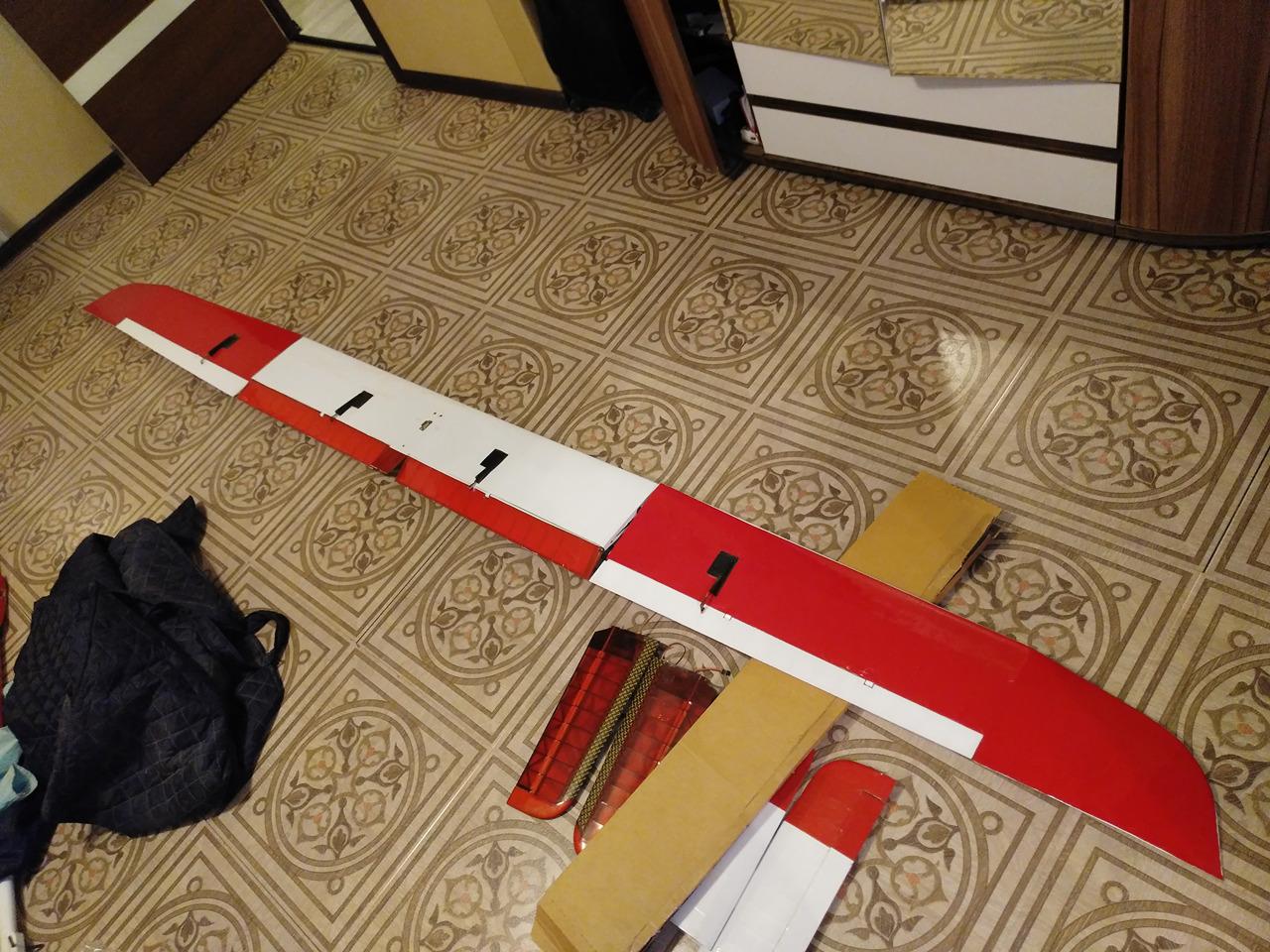 все сервомашинки установлены. крыло наборное с жестким лобиком из кевлара.покупал тут как графит первых версий. без приемника. с аккумулятором для планерного фюзеляжа.