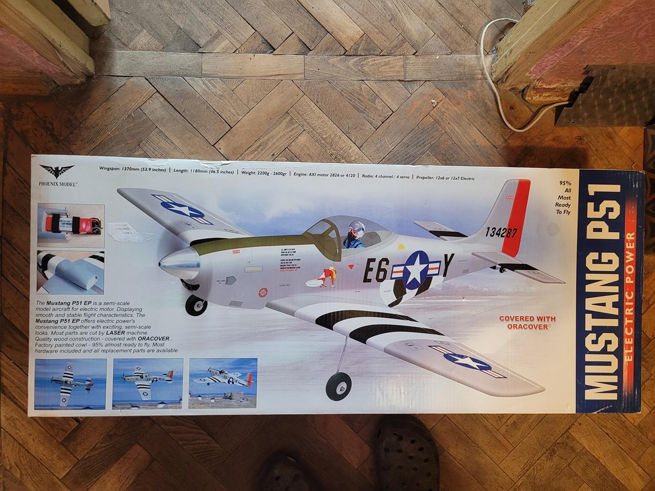 ARF Набор гибрид полукопии и пилотажки самолета Mustang P51. Размах крыла-1370мм. Длина-1180мм. Под электро двигатель 2826-4120.