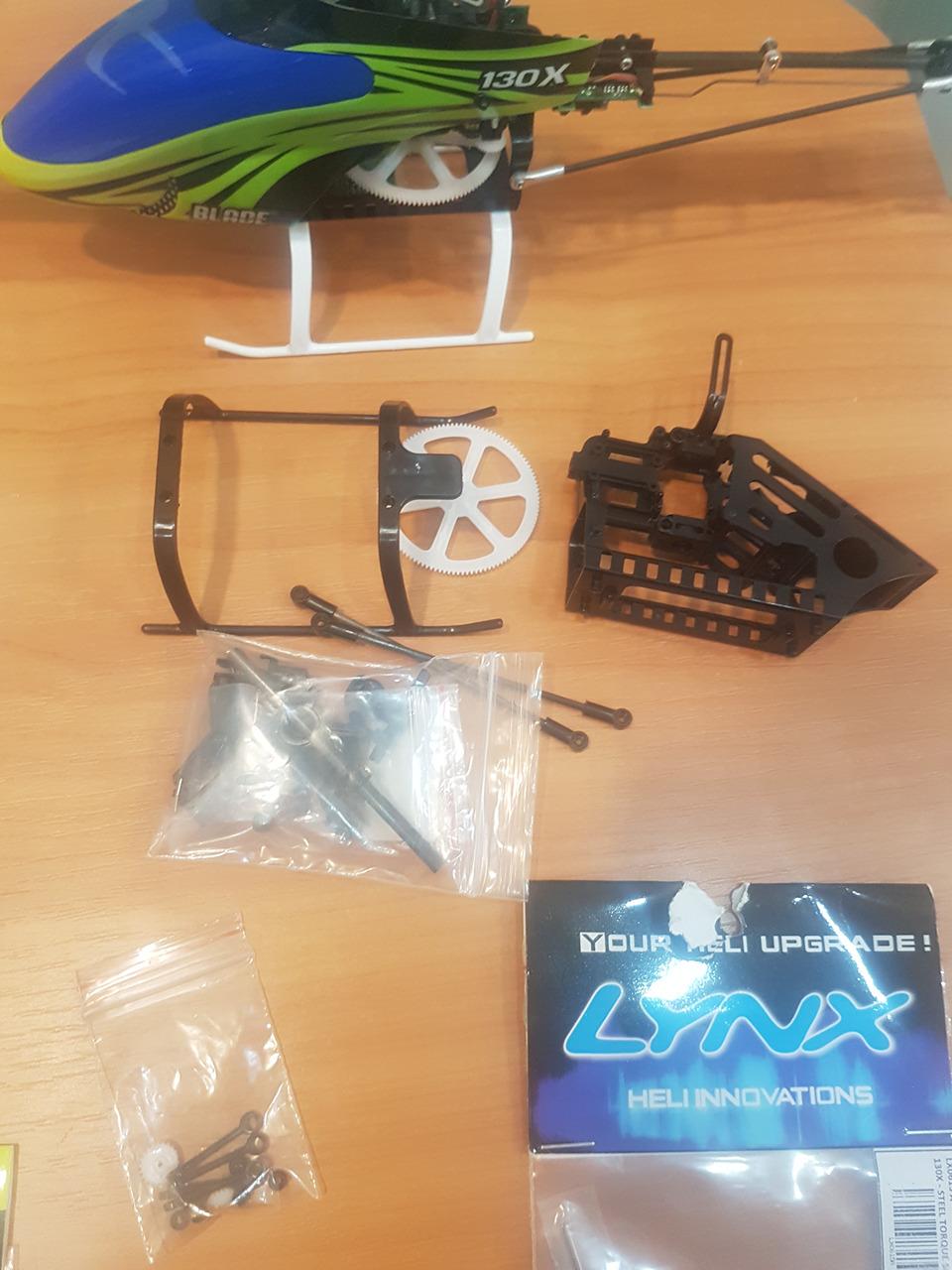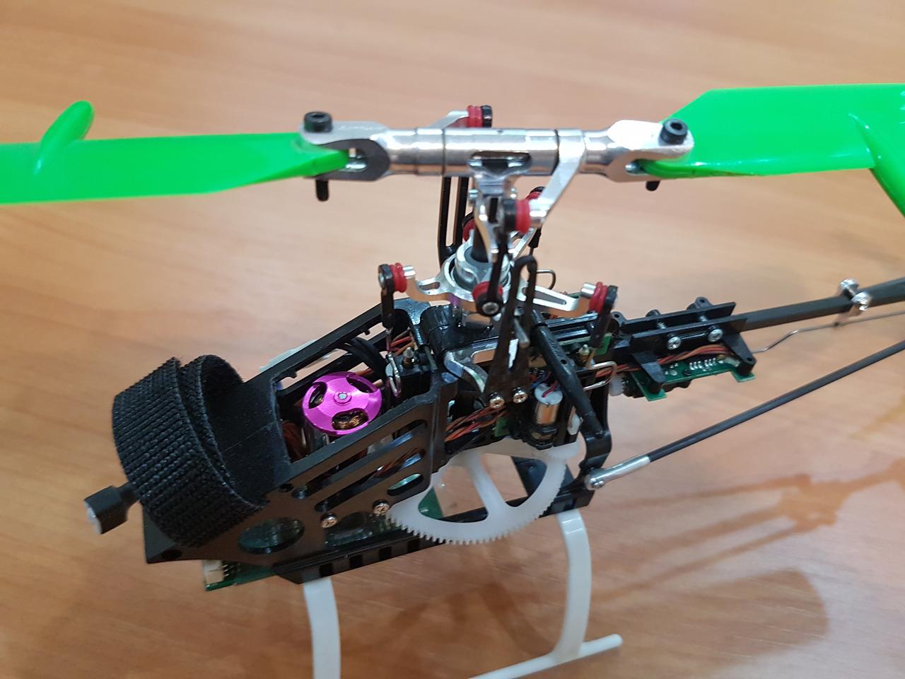Второй вертолет полностью апгрейтированный запчастями Linx и прочими. Тарелка весь верх и хвостовой кейз в алюминии, удлиненные тяги, улучшенные шасси, бесколлекторный мотор linx 8350, улучшенные лопасти. Вертолет не использовался, только проверился на работоспособность при сборке. Возможно требует настройки.