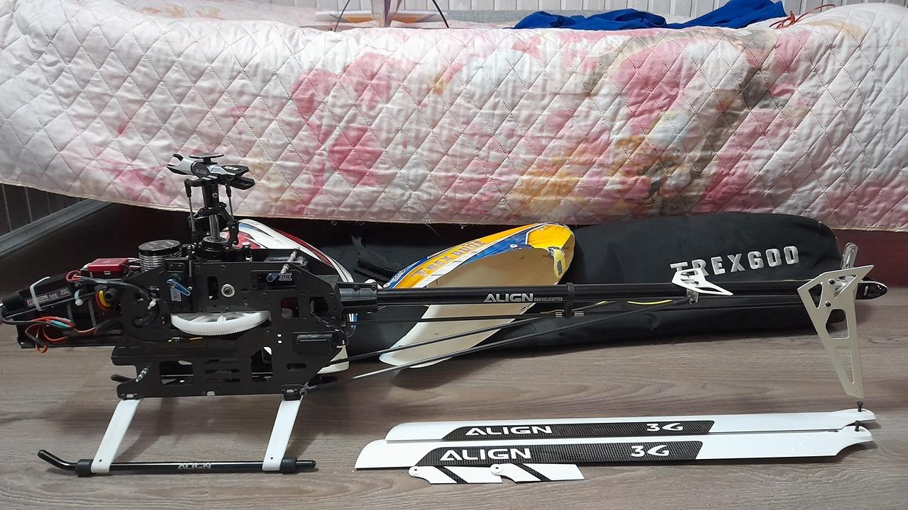 Итак в продаже: Вертолёт летает, вибрации в норме - могу записать видео и показать реальный уровень (FBL Spirit это умеет). Тушка вся в стоке - никакого колхоза, детали с небольшим пробегом + 2 капоны (старая PRO и новая DOMINATOR), лопасти ОР/ХР, сервы DS 610/650 и мотор RCM-BL600M (снимаю только регулятор - он всё равно не особо вертолётный). ЗИП: Хвостовая балка, вал ОР, линки и чехол оригинал Aligh TRex 600. Пересыл в регионы возможен!