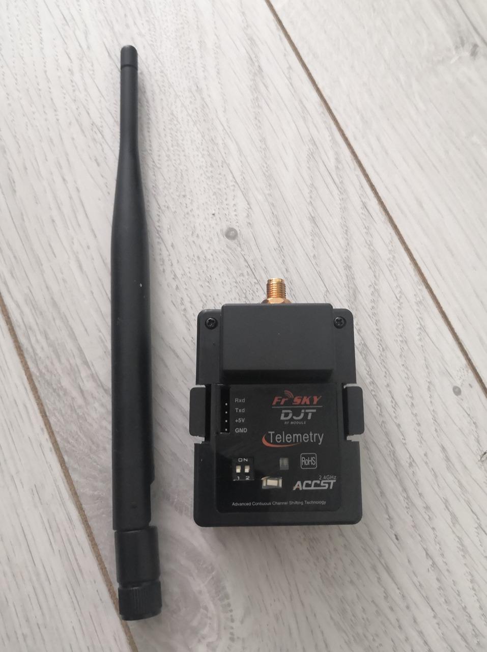 - модулем DJT Accst 2.4Ггц с телеметрией и большой антенной для надёжной и дальней связи (намного лучше стокового варианта)