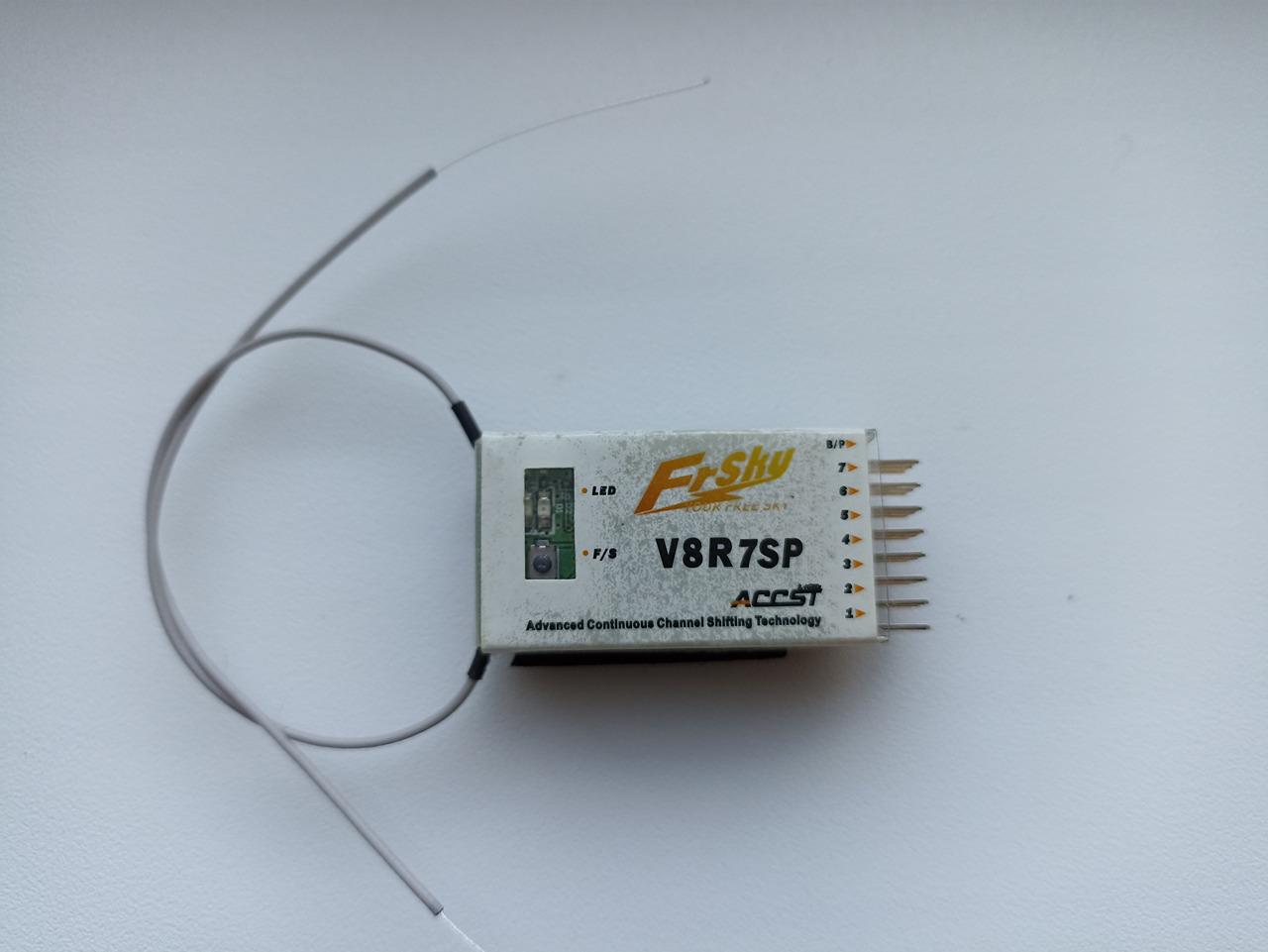 Заменен передающий модуль на FrSky V8HT (родной не сохранился), проверял лично дальность - в прямой видимости не менее 2 км по земле. Вопросов по надежности никогда не возникало. Приемник V8R7SP 7-канальный в комплекте.
