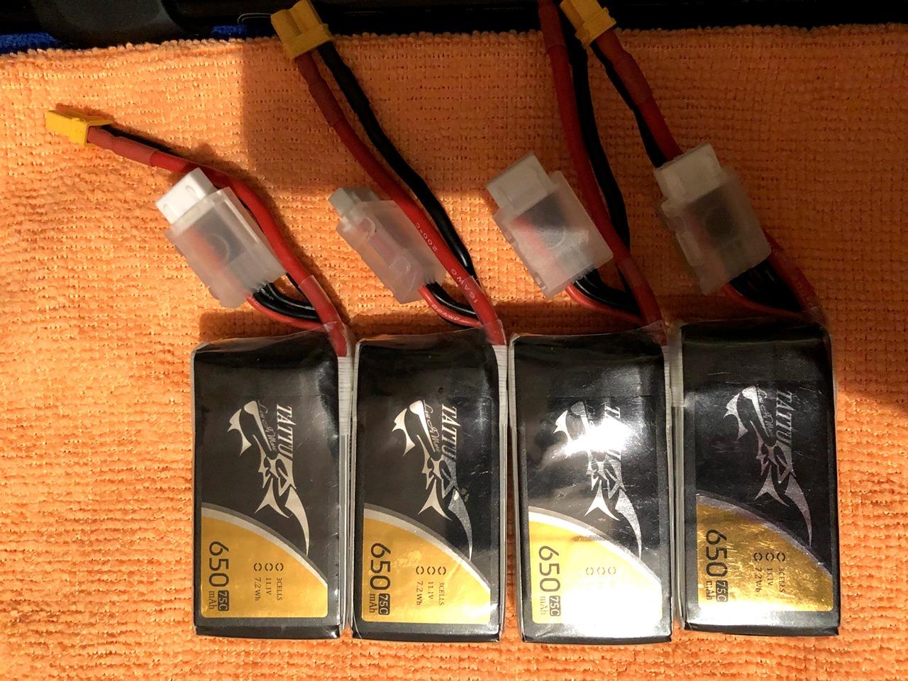 4шт Tattu 650 mAh 3S 75C. Прошли по 4-5 циклов. Покупал здесь