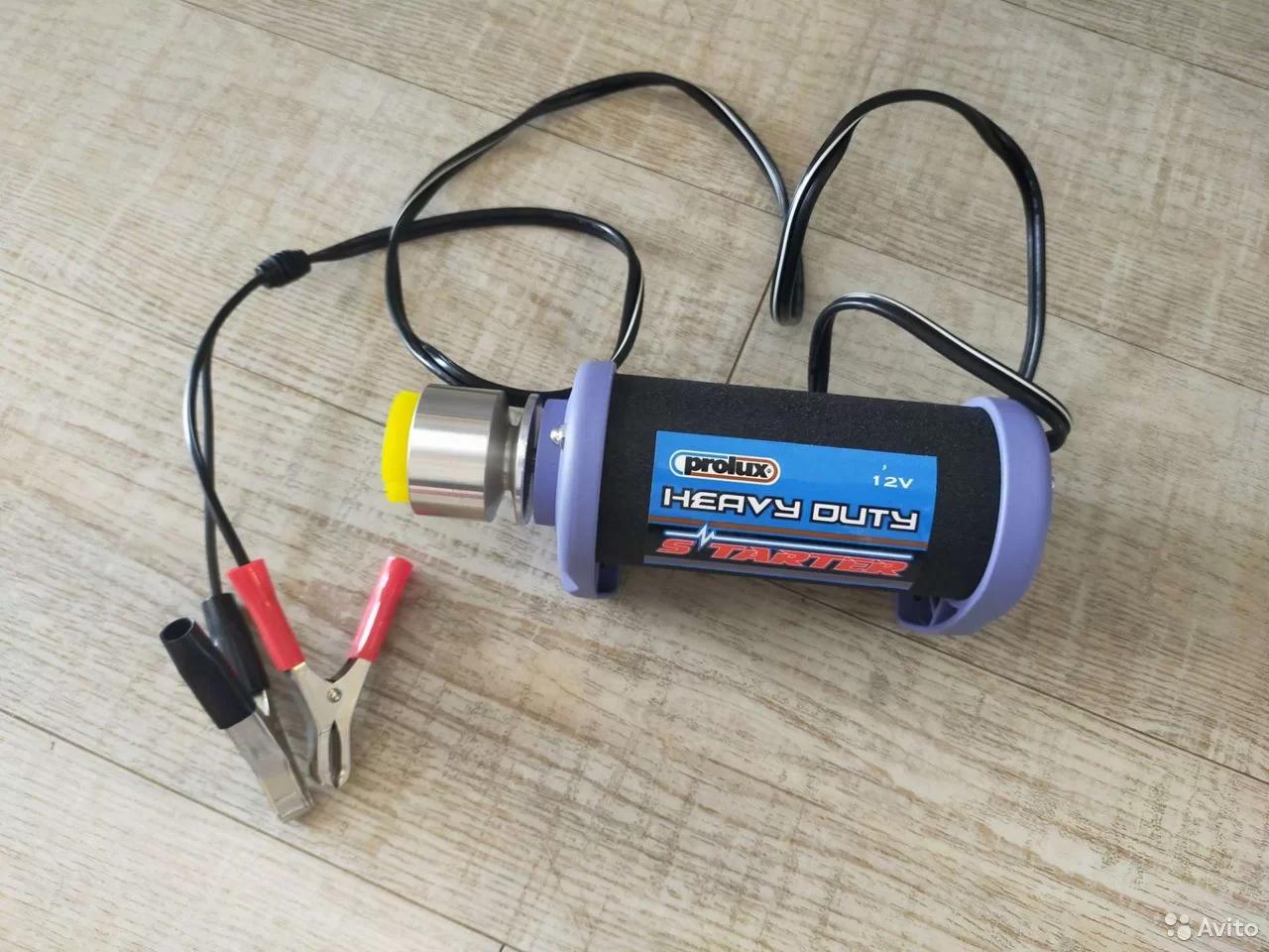 Электростартер HEAVY DUTY 12V STARTER 90 с проводом и зажимами “крокодилы” для подключения к источнику питания 12В, специальная резиновая вставка для запуска авиамодельных двигателей.