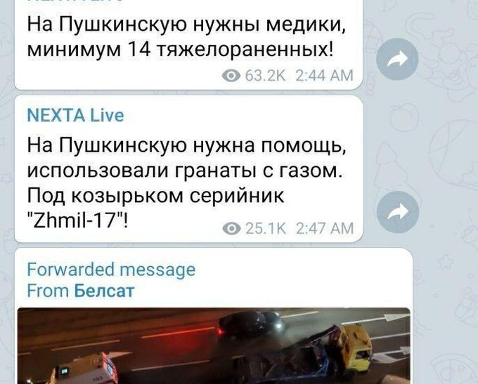 Ну так для информации: никто не заезжал высказывать своё недовольство на машине. Проспект открыт для движения, люде едут “по своим” делам. Вдруг проспект перекрывают и начинается трэш. Разве не видно, что там не одна две машины, а просто ехал поток, который начали рассекать силовики? И никто не давил МАЗом никого на самом деле. Человек лез на этот автозак и упал, а как уж вам эту новость преподнесли ваши СМИ это дело другое. Его хоть не съели по версии ваших СМИ?