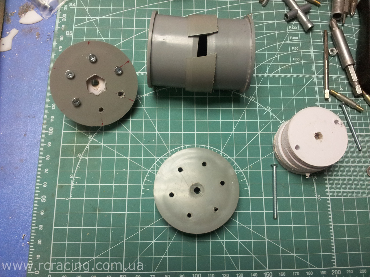 На один диск берем две заглушки для канализации на 50мм (по 3грн)режим в размер, отход на проставку, сверлим, болтом на 12мм выжигаем место под хекс…