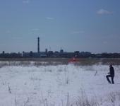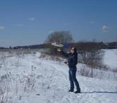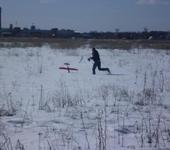 Вчера наконец-то тепло и я решился выйти попробовать запустить як-12, места жалко не очень много благо речка еще замерзшая и можно было на ней полетать, деревьев мало но местами есть.