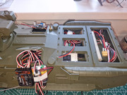 Еле всё всунул в нутро предусмотренное для этого дела + ещё соорудил ещё один отсек в районе десантного отделения. Соответственно сделал открывающимися люки десанта, предусмотренные под заклейку куда разместил приёмник, динамик озвучки работы двигателя, звуковой блок, блк LM питания озвучки выстрела пушки и дымогенератор. Динамик озвучки пушки разместил в люке мех.водителя (дабы был хорошим звук). Сейчас жду металлические шестерёнки для волноотражателя( пришлось изучить, как рассчитать передаточное число зубчатой передачи на угол поворота сервопривода). Заслонка водомёта уже работает нормально. [url=postimg.cc/1gZdt81n][img]i.postimg.cc/1gZdt81n/…/url]