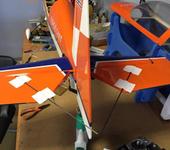 Аналогично навешивал рули, но использовал сетчатую ленту для швов ГКЛ, она имеет слабый клеящий слой, но достаточный что бы не сдвигалась, потом поверху наносил клей “титан” и ровнял его скребком. Держит мертво как на деревянных поверхностях, так и на поверхностях всех пенопластов(очень удобно ремонтировать рули на моделях Multiplex)