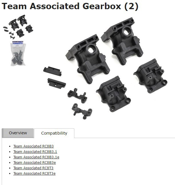 На фото корпус дифа RC8B3.1 и редуктора совместимого с обоими версиями