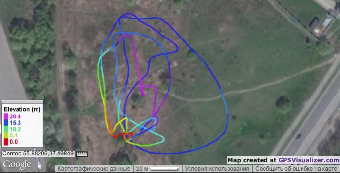 Но нашёл сервис http://GPSVisualizer.com, на который можно загрузить трек. Участки разной высоты выделяются разными цветами: rcopen.com/files/55e7d9f399707300777aae96