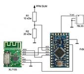 8. Подключаем питание и PPM-сигнал в соответствии со схемой и фото.
