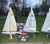 Ну и борьба была на дистанции, доложу я вам! Не гонка а лотерея - кому ветер достанется, тот и едет. 😂 Лидерство постоянно менялось. Даже Костя Волков, который выступал вне зачета на своей “Виктории”, постоянно испытывал трудности. Один раз он зацепил тросик знака и запутался. Пока распутывался соперники уже догнали. У Константина вообще курьез произошел - на его частоте оказался “монстр”, на котором приехал погонять Кости Волкова знакомый. А частоты пересеклись на самом дальнем знаке №2. Это было шоу - Константин ходил с поднятыми вверх руками, пытаясь управлять яхтой, думая, что вся проблема в батареях приемника. А еще обкатали Mini-Z катер! Прикольный такой - маленький, а едет. 😃 И в конце концов - наступило всеобщее облединение! Вода застывала на палубе яхт… 😮