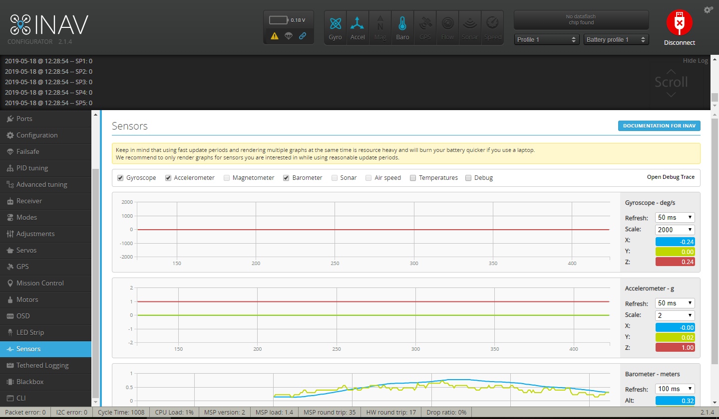 Подскажите пожалуйста, на коптере стоит Matek f405ctr, какие должны быть показания датчика барометра в конфигураторе? При подключении он с нуля поднимает цифры до 48, и дальше плавает в этом диапазоне. Так и должно быть?