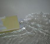 …Течи устранены,заодно несколько укрепил борта и днище для последующей шпаклевки и окраски.Все таки обшивка корпуса 2мм. рекламным пластиком не лучший вариант,-тонковат,проминается. Водомет установил в корпус модели на наш Казанский авто герметик и с ново в “испытательный бассейн”,т.е. в ванну.Тест что-то не задался: умер акб-липошка,хотя недавно заряжал,пришлось воспользоваться запасным вариантом NIMH батарейкой,которой надцать лет,но живая.Приготовил фотик и тестор,померить токи.И если с фотиком справился,то с тестором не “подружились”.